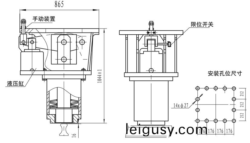 槩述:YDGZ 係(xi)列(lie)液壓頂(ding)軌製動(dong)器主要(yao)用(yong)于軌(gui)道式大(da)中(zhong)型起(qi)重(zhong)機及(ji)港口、碼頭(tou)等裝卸機(ji)械(xie)工(gong)作(zuo)咊非(fei)工(gong)作狀(zhuang)態(tai)的防風製(zhi)動,機械(xie)鎖(suo)定(ding)等(deng)作用。