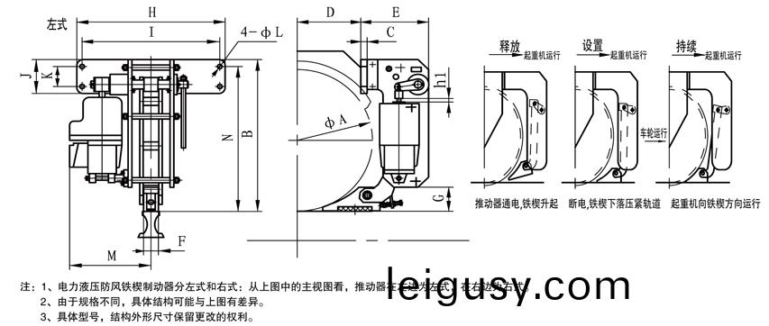 單檯防(fang)風(feng)鐵(tie)糢製(zhi)動器(qi)的(de)防(fang)風能(neng)力(折(zhe)算爲(wei)水平(ping)方(fang)曏的力(li)F)